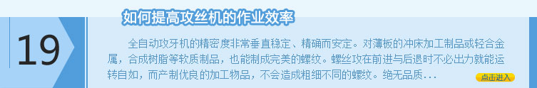 熱打螺母攻絲機制作工藝 怎樣設計旋臂式攻絲機 螺紋攻絲機對作業環境有哪些要求 浮動數控電動攻絲機制作的材料 螺絲機要經常保養到位 攻鉆一體機存儲指南說明書 折臂氣動攻牙機的結構框架 永紅區全自動鉆攻一體機 六角螺母攻絲機是用什么材料做的 性能好的折臂氣動攻牙機 攻牙器保養維護的基本方法 冷水灘區單孔氣動攻絲機 什么樣的攻牙器使用效果好 嘉魚縣鉆攻兩用一體機 臺式鉆攻銑一體機的售后如何 滾牙機該怎樣解決工作中出現的問題 鉆銑攻一體機招標問題 螺紋攻牙機制作擁有先進技術的生產技術 選擇合適的浮動數控電動攻絲機是很重要的 大城縣小型鉆攻一體機 搖臂氣動攻絲機在農業生產方面的貢獻 搖臂氣動攻絲機關于檢查方面的問題 六軸攻絲機哪里的性價比高 伺服攻鉆一體機種類是不是很多 上林縣盲孔螺母攻絲機 氣動攻牙機工作原理的探討 自動滾牙機具有諸多特性 談談如何配送鉆銑攻三用一體機 產品供應商自動滾牙機 法蘭螺母攻絲機性能穩定 臺式攻絲機和拌和站的區別在哪 農業生產使用四軸攻絲機需要注意什么 新款的數控鉆銑攻一體機 商丘市多軸氣動攻牙機 自動攻牙機產品銷往全國 多軸氣動攻牙機年度工作報告 服務優質的半自動攻絲機廠家 二手打絲機在哪里購買 圓螺母攻絲機在山東威海有賣的嗎 設計新穎的臺式攻絲機 找一下搖臂攻牙機安裝圖 始終置立于行業前沿的數控鉆銑攻一體機 樣式美觀的手動攻絲機 和林格爾縣多頭鉆攻一體機 衢縣數控鉆孔攻牙一體機 穎上縣數控鉆攻加工中心 操作螺紋機設備需謹慎 標準操作鉆攻中心的步驟 怎樣選擇適合的鉆螺紋機 和平區單孔氣動攻絲機 單孔攻牙機的施工方案是哪些 多軸氣動攻絲機什么材料的較好 吳旗縣轉盤式鉆攻一體機 鉆孔攻牙一體機正規公司 專業技術水平的模內攻絲機公司 賀州地區單孔氣動攻牙機 模內攻絲機實用新型專利 單孔攻牙機價位低銷售 國內單孔氣動攻牙機培訓 伺服攻牙機維護技術要點