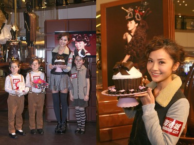 活動期間,蔡卓妍與大家分享了拍攝時的趣事,阿Sa并即場發揮無限創意為小女孩設計朱古力造型,以及接受小朋友送上的精美朱古力禮品,一同投身朱古力王國,尋找甜蜜足跡。 本次拍攝宣傳照片的頭飾,更邀得曾為Lady Gaga及Rihanna等天后級歌手制作無數驚艷頭飾及帽子的設計師 Piers Atkinson制作小櫻桃頭飾。阿Sa需要戴上重4磅的頭套,以假發繞成朱古力的模樣,并在小櫻桃插上一根特大的叉,配合展覽主題。除此之外,化妝方面亦要灑上大量朱古力粉!