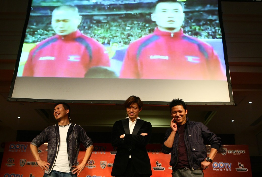 上海2011年4月18日電 /美通社亞洲/ -- 17日晚,PPTV 網(wǎng)絡(luò)電視直播英超賽事第2場地面活動(dòng)在上海一家別具情調(diào)的歐式酒吧正式開煲。直播經(jīng)驗(yàn)豐富的 PPTV 網(wǎng)絡(luò)電視首發(fā)強(qiáng)勢(shì)組合“蟹皇粥”,黃健翔、謝暉、周亮三位著名解說主持人亮相當(dāng)晚阿森納對(duì)陣?yán)锲株?duì)的比賽解說中。令人意外的是,在當(dāng)晚的解說中,一組來自民間自發(fā)組成的解說隊(duì) -- “菜泡飯”,公開踢館,活動(dòng)現(xiàn)場一片嘩然,人氣爆棚,三位解說主播表示會(huì)積極接戰(zhàn)。(PPTV 網(wǎng)絡(luò)電視英超直播地址:http://yingchao.pptv.com/。)