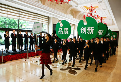 宣示結束后,在潮水般的擊掌、能量傳遞中,各單位的標志被依次點亮,最后一同點亮了“品質華僑城,幸福千萬家”的口號,啟動儀式在一片歡呼聲中圓滿結束,酒店物業事業部2011品質服務年活動也在團隊的能量傳遞與強化中正式啟動。