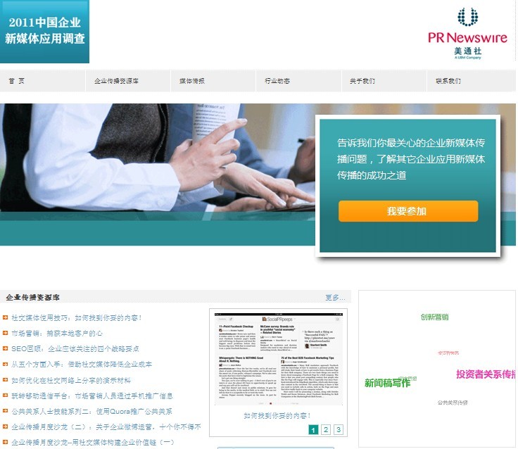 美通社啟動2011中國企業(yè)新媒體應用調查