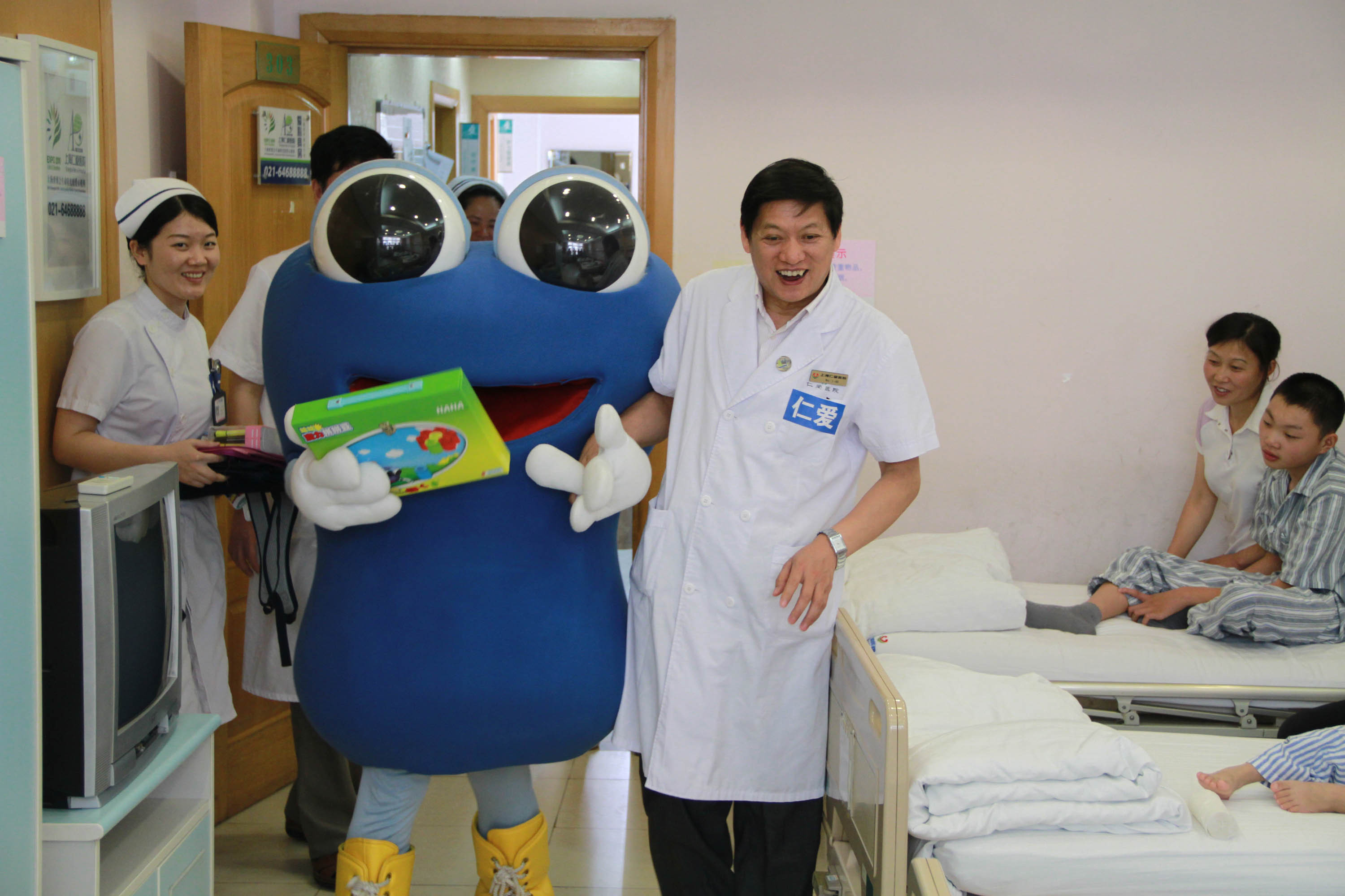 6月底,上海哈哈少兒頻道節(jié)目組一行人專訪上海仁愛醫(yī)院看望兩位受助孩子,上海仁愛醫(yī)院院長施龍飛拉著頻道吉祥物 -- 卡通青蛙形狀的“哈哈”的手走進(jìn)病房。憨態(tài)可掬的“哈哈”一直很受孩子歡迎,他代表節(jié)目組主持人和其他工作人員給孩子們送上了精美的玩具禮物,上海仁愛醫(yī)院則準(zhǔn)備了嶄新漂亮的書包、彩色畫筆、文具盒送給孩子們。小童撫摩著禮物,看著“哈哈”可愛的大眼睛,張開嘴現(xiàn)出了開心的笑容。小田抱者“哈哈”的大肚子,忍不住激動(dòng)得淚流滿面。小童的家長用簡單樸實(shí)的語言表達(dá)了對(duì)節(jié)目組和醫(yī)院的感謝,孩子們又哭又笑,體會(huì)到了被更多人關(guān)愛的幸福。所有人都被他們的情緒感染了,哈哈少兒頻道和上海仁愛醫(yī)院,為這些迫切需要幫助的孩子和他們的家庭,切實(shí)有效地做出了善舉。