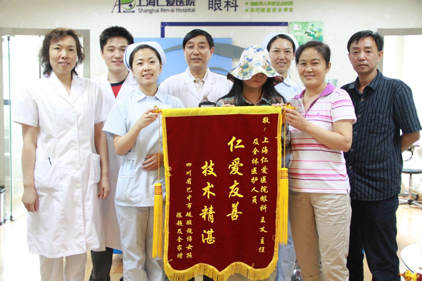 上海2011年7月13日電 /美通社亞洲/ -- 日前,今年初曾由中央電視臺作專題訪問、遭強硫酸毀容的四川女孩陳超及家人來到上海仁愛醫院,并給關心她的人們帶來了一個好消息:通過北京中國兒助會了解到陳超的不幸遭遇和感人故事后,美國波斯頓一家整形整容醫院愿意為陳超做免費的整形手術,她將在近日赴美國繼續接受治療。行前,她親手將感謝的錦旗送到上海仁愛醫院,陳超的父親還代替她書寫了一封感謝信,來表達她們全家言之不盡的謝意。