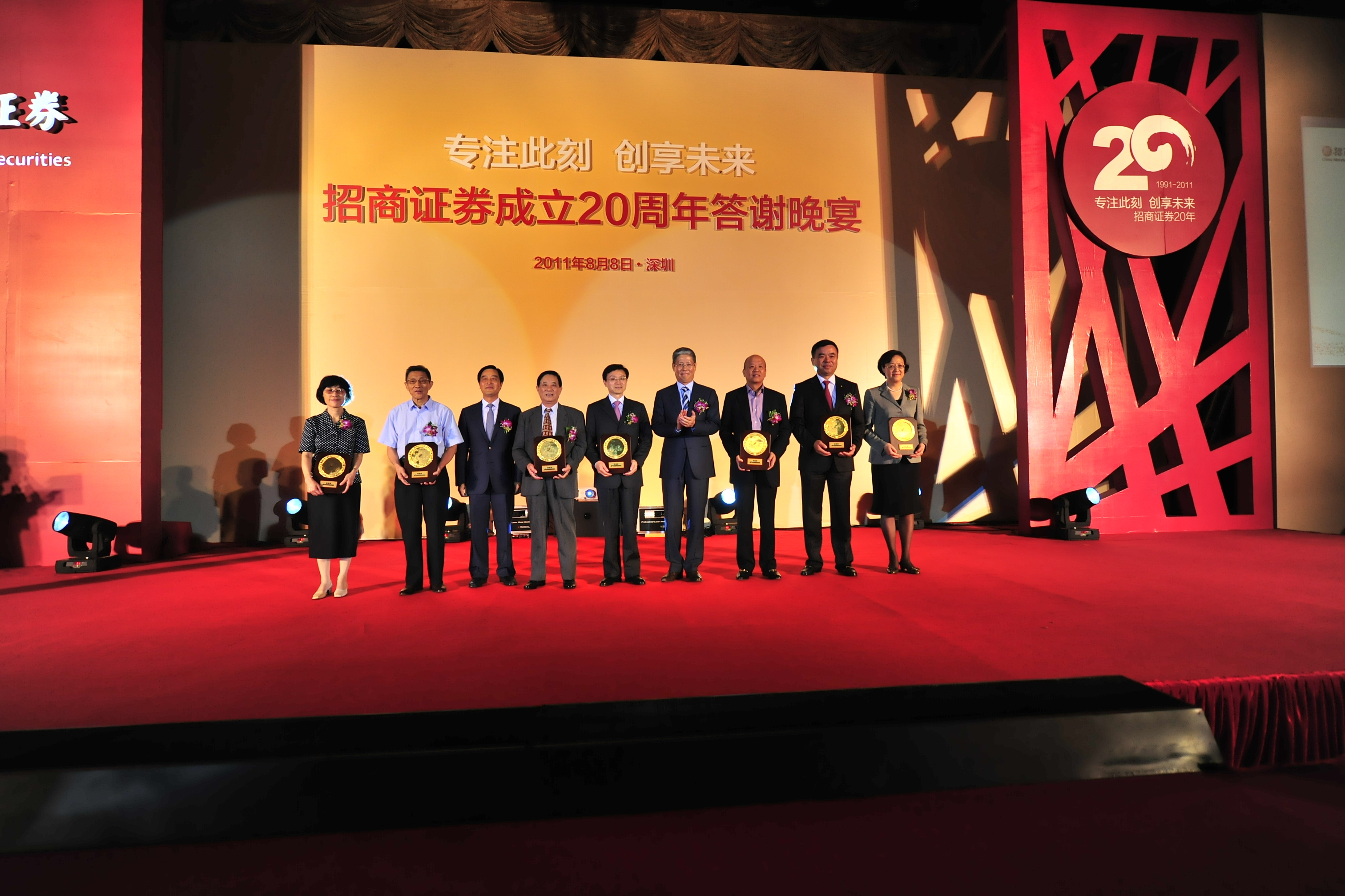 深圳2011年8月9日電 /美通社亞洲/ -- 8月8日,招商證券在大中華喜來登酒店隆重舉行“專注此刻,創(chuàng)想未來”20周年慶典,在熱烈慶祝招商證券成立20年的同時,向20年來一直關心、支持公司發(fā)展的各級政府、監(jiān)管機構和行業(yè)協(xié)會、股東單位、合作伙伴、公司客戶以及各界朋友表示衷心的感謝。