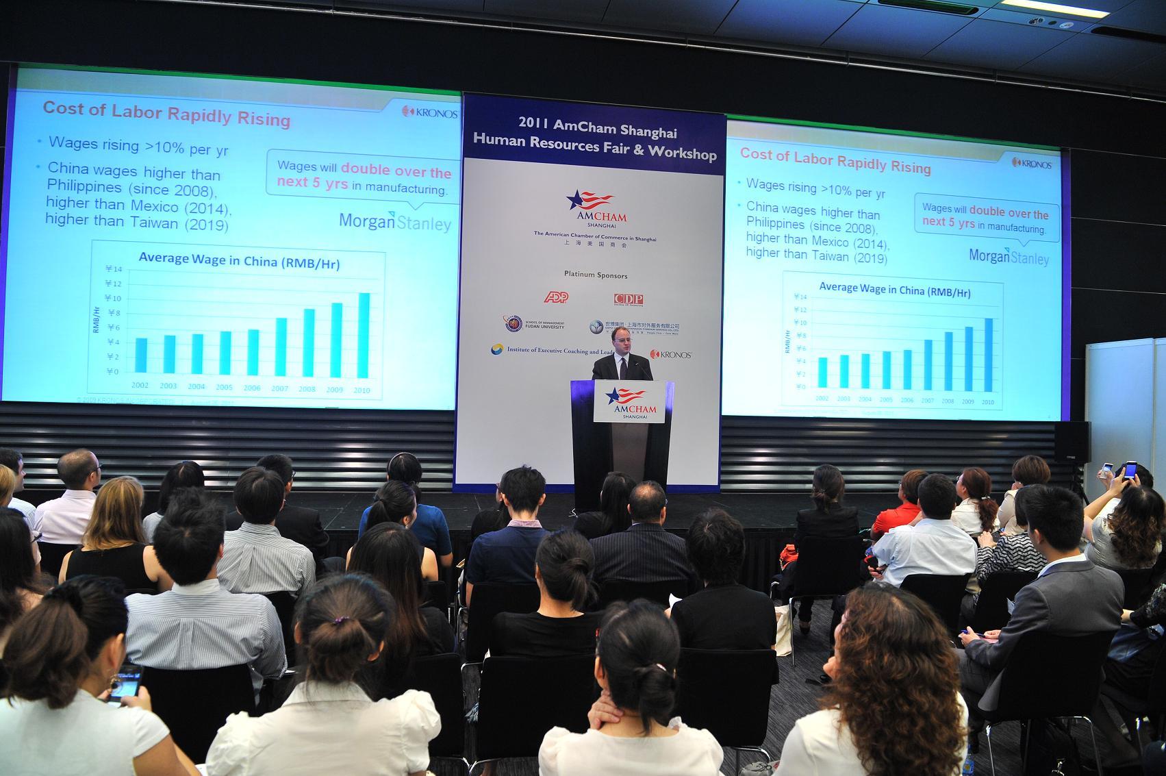 上海2011年8月29日電 /美通社亞洲/ -- 上海美國(guó)商會(huì)于8月26日在上海環(huán)球金融中心舉行了2011人力資源展暨研討會(huì)。來自 ADP、安怡翰威特、CDP、克羅諾斯(Kronos)等全球知名人力資源管理公司的專家向參會(huì)的企業(yè)人力資源經(jīng)理人介紹了業(yè)內(nèi)創(chuàng)新性管理工具和最新管理實(shí)踐,探討了包括基于云交付的人力資源服務(wù)、精益勞動(dòng)力、企業(yè)教練文化、彈性福利制等前沿管理話題。