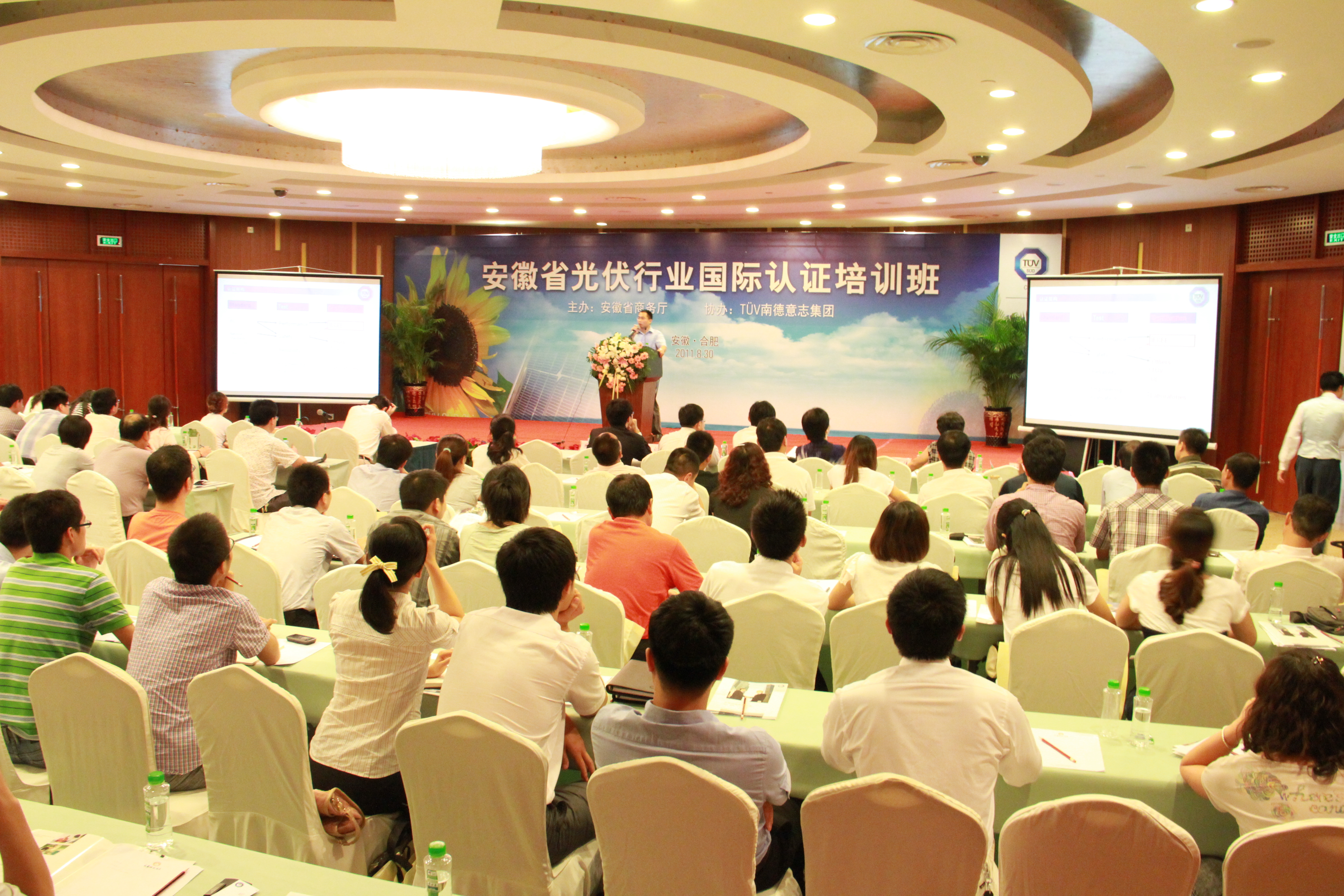 合肥2011年8月31日電 /美通社亞洲/ -- 由安徽省商務廳牽頭,TUV 南德意志集團于近日在合肥市舉辦了安徽省光伏行業國際認證培訓班。旨在幫助企業了解光伏產品出口標準,突破貿易壁壘,順利通過歐盟等全球主要市場的認證。