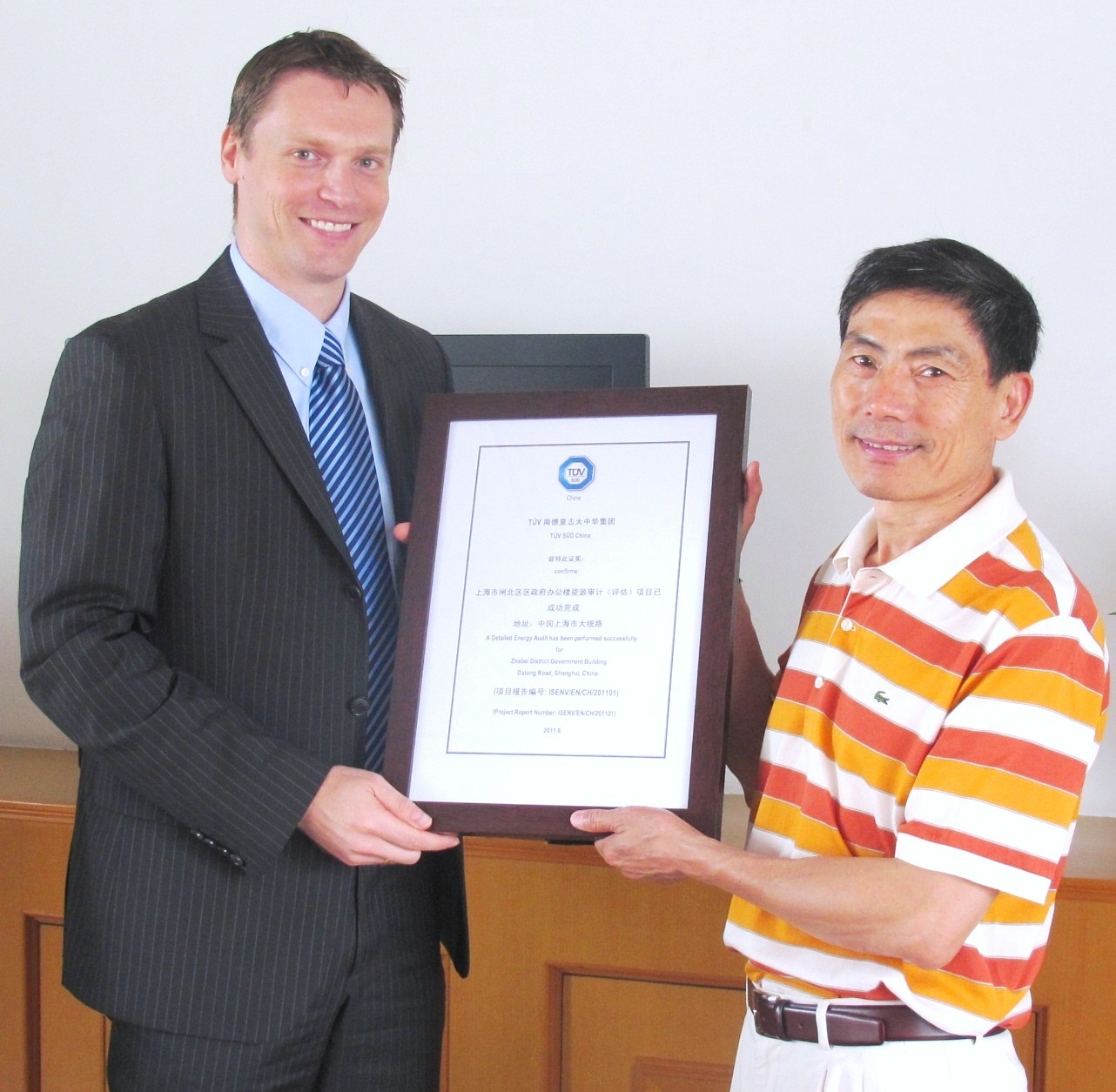 上海2011年9月28日電 /美通社亞洲/ -- 繼上海市閘北區區政府辦公樓進行 TUV南德意志集團(以下簡稱 TUV SUD)能源審計(評估)項目后,能源審計報告在上海市閘北區區政府頒發。TUV SUD 大中華集團副總裁Wolfgang Hubl 先生向閘北區區政府機管局頒發了報告。