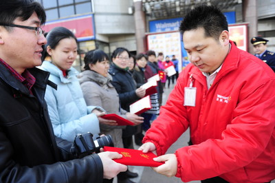 重慶2011年10月25日電 /美通社亞洲/ -- 在重慶沃爾瑪商場重新營業的第一天,沃爾瑪公司管理層非常關注顧客服務,沃爾瑪中國大賣場高級副總裁兼首席營運官董開源(Del Sloneker)帶著重慶沃爾瑪商場的區域經理、商場總經理對沃爾瑪大渡口店的小區顧客進行了回訪,了解顧客需求以及對商場未來改進的意見和看法。