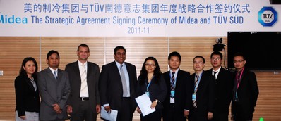 廣州2011年11月14日電 /美通社亞洲/ -- 2011年11月3日,TUV 南德意志集團(以下簡稱“TUV SUD”)全球產品服務部首席執行官 Ishan Palit 與美的集團國際事業部副總裁劉敏女士在順德北滘美的集團總部就雙方未來的合作模式達成戰略合作協議。這是繼去年九月份 TUV SUD 與美的集團簽署全方位戰略合作協議之后,雙方再一次深入合作。此次合作協議的成功簽署,進一步擴大雙方合作的領域,TUV SUD 將繼續致力于縮短美的產品的認證服務周期,加強海外產品監管,幫助美的產品在發達地區的商業滲透,拓展海外市場。