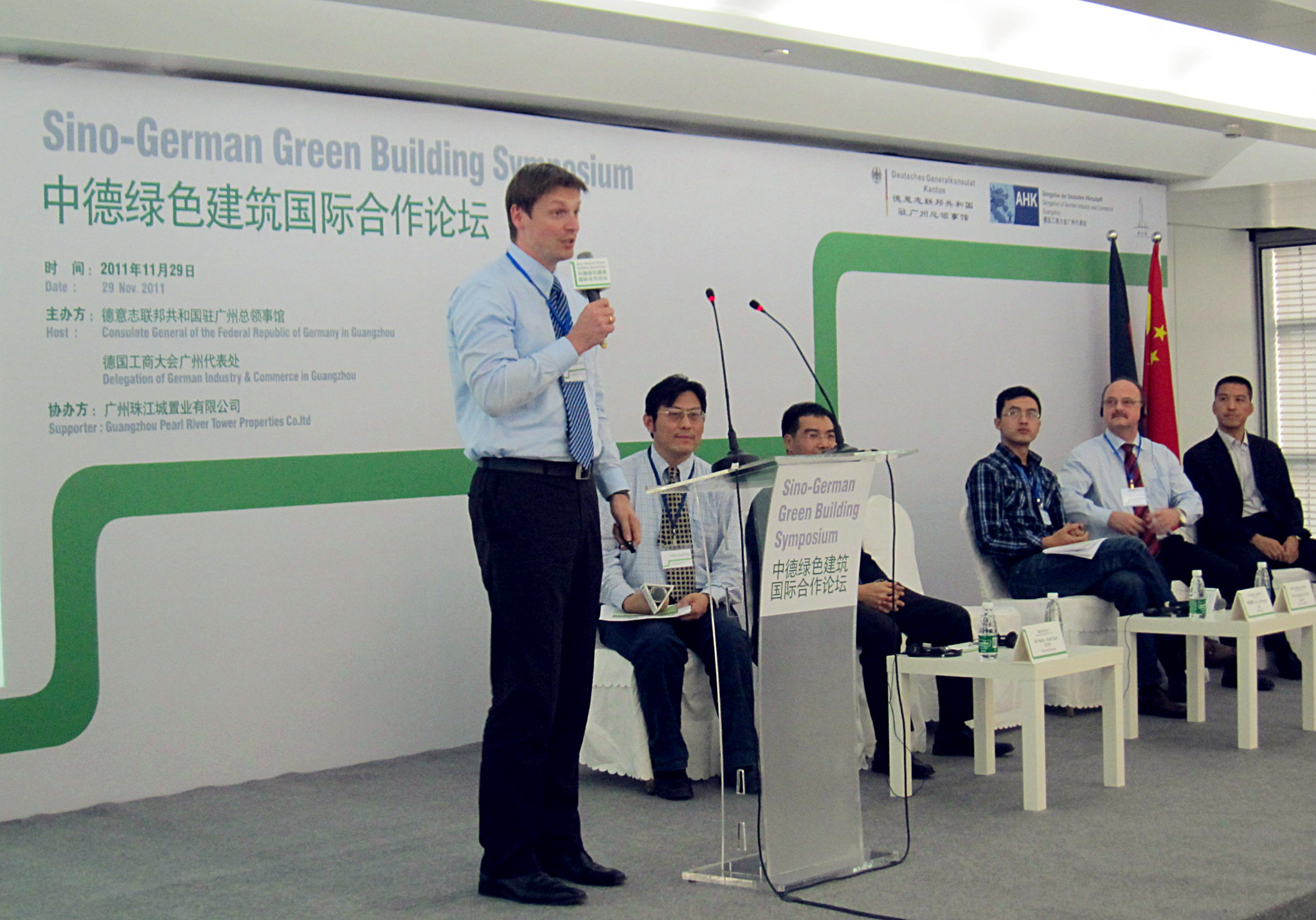 廣州2011年12月1日電 /美通社亞洲/ -- 2011年11月29日,由德國工商總會和德國領事館共同主辦的中德綠色建筑國際合作論壇在廣州舉辦。TUV 南德意志集團大中華區(以下簡稱為 TUV SUD)副總裁Wolfgang Hubl先生在此次論壇中分享了德國第三方認證審核推動公共建筑領域節能減排工作的經驗。