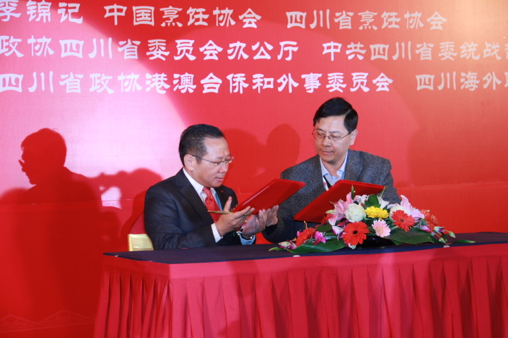 四川省政協副主席陳杰、中共四川省委統戰部常務副部長堯斯丹、中國烹飪協會常務副會長楊柳、李錦記集團董事李惠中先生等領導,以及優秀川菜餐飲企業代表共一百多人出席了論壇,共同討論川菜非遺保護和川菜產業發展的對策。同時,李錦記還在現場與四川省烹飪協會簽訂《支持川菜申遺合作備忘錄》,以實際行動推動川菜非遺保護和傳承。