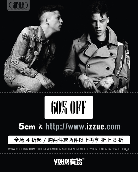 I.T旗下主打品牌izzue和5cm以簡約混搭的理念和強烈的設計感不斷刺激著年輕人的潮流觸覺,成為了時下潮人們首選的兩款品牌。此次活動izzue、5cm全場商品都將在YOHO!有貨4折起售,購滿兩件再享8折優惠。囊括羽絨服、衛衣、毛衫、針織衫長褲、等上百種款式,今冬最潮單品一網打盡!