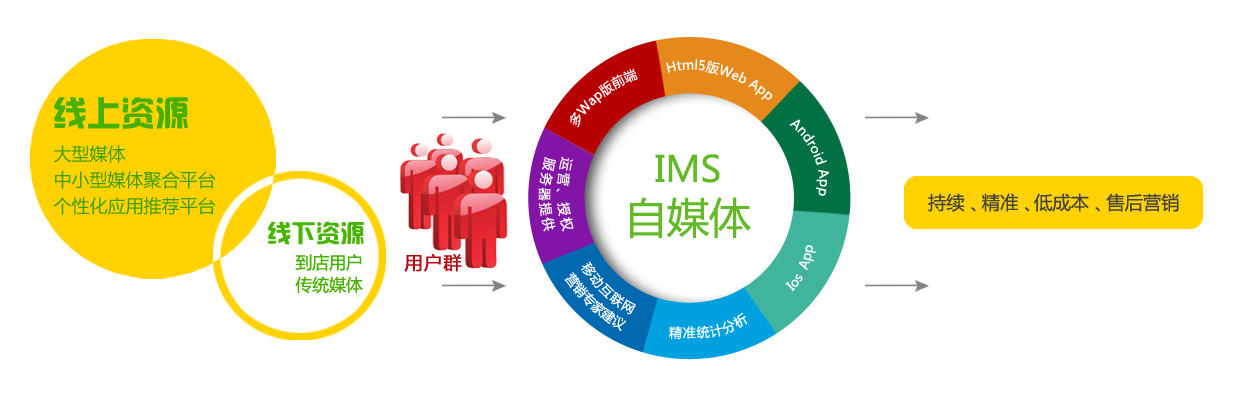 IMS系統(tǒng)的優(yōu)勢(shì)在于,其首先能給企業(yè)增加新用戶的上游資源引入,并能將引入資源轉(zhuǎn)化為會(huì)員,繼而進(jìn)行持續(xù)、精準(zhǔn)、低成本的企業(yè)“自媒體”平臺(tái)營(yíng)銷(xiāo);同時(shí),該系統(tǒng)還能提供專業(yè)的托管、運(yùn)營(yíng)、統(tǒng)計(jì)報(bào)告、專業(yè)營(yíng)銷(xiāo)指導(dǎo)等服務(wù),為企業(yè)提供一套上中下游整體營(yíng)銷(xiāo)服務(wù)體系。