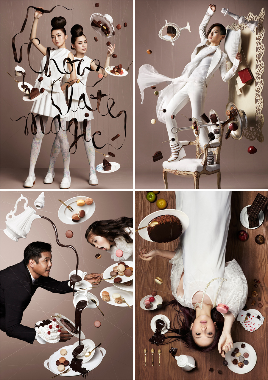 巧克力的魔力令人難以抵擋,若把大家對(duì)巧克力的幻想以視覺(jué)手法呈現(xiàn)眼前,又會(huì)是怎樣的呢?日本創(chuàng)意團(tuán)隊(duì)NAM由設(shè)計(jì)師中澤貴之(Takayuki Nakazawa)和攝影師間仲宇(Hiroshi Manaka)組成,作品充滿幻想,并致力追求"Fantasy in Life"的主題。NAM把這個(gè)主題融入巧克力中,并把大家對(duì)巧克力的幻想以超現(xiàn)實(shí)的手法,在BiBi周筆暢、Twins (蔡卓妍及鐘欣桐)、鄧紫棋G.E.M.及黑人陳建州身上體現(xiàn)。此輯照片由即日至2012年2月19日于海港城港威商場(chǎng)大堂I及II展出,讓大家一同墮進(jìn)兩位日本大師的‘Chocolate Magic巧克力魔法’中。