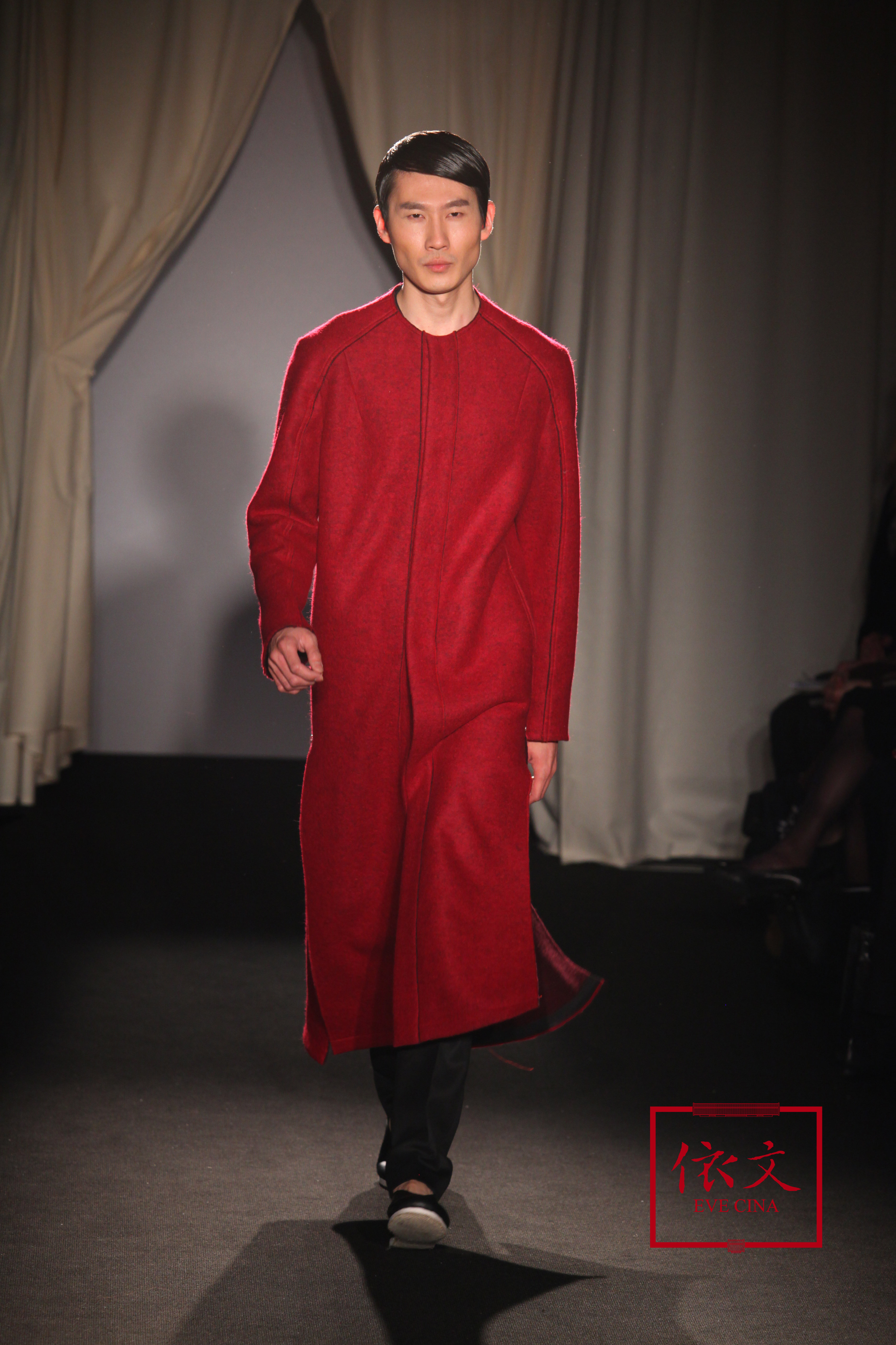 當晚7點,由李振,杜詩博,傅正剛,孟飛等中國知名的超級男模,在倫敦頂級秀導的安排下,依文(EVE CINA)淋漓盡致地演繹了中國服裝文化的精髓。整場時裝發布將焦點聚集于傳統與現代完美融合下的中國原創設計,各界手工藝大師在服裝的方寸細節之處完美展現了傳承百年的傳統手工藝術:嵌繡工藝大師以精湛的手工技藝繡出精致唯美的紋理圖案;精雕細琢的墨玉紐扣,實現了手工工藝與時尚美感的共融;創新縫合技藝“手工穿縫”織造出獨特的面料紋理;“以人為本”的服裝廓形,在極簡主義的裁剪方式下表達出輕松自然的中國式生活哲學。