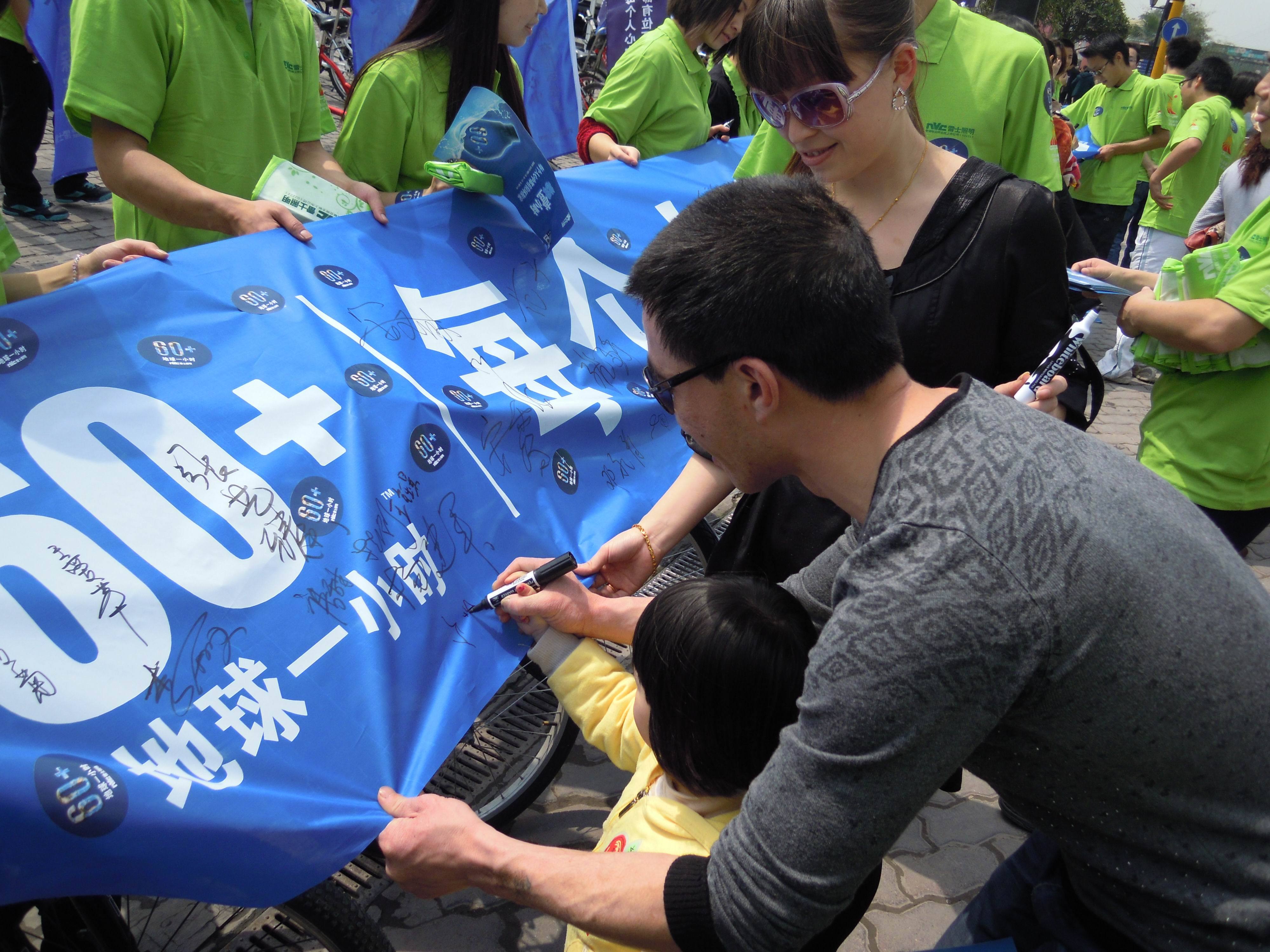 低碳騎行+承諾簽名 環(huán)保理念深入人心