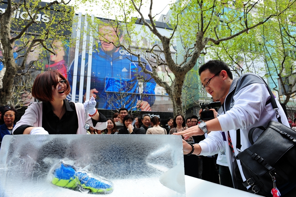 上海和北京2012年4月16日電 /美通社亞洲/ -- 繼奧運拳擊冠軍鄒市明和著名影星姚晨在北京向全國消費者發出“全傾全力360度透氣酷跑”的邀請后,阿迪達斯全國范圍內的100家門店聯手邀請消費者于4月14和15日前往現場體驗全新ClimaCool清風跑鞋,阿迪達斯在上海淮海路以及北京三里屯品牌中心更是推出了全天路演,讓更多消費者親身參與體驗。活動借鑒了姚晨和鄒市明在發布會上跑步破冰贏鞋的形式,每一位到場者都有機會親身體驗并挑戰破冰環節。與此同時,阿迪達斯“奪寶奇冰”手機游戲也全新上線,消費者一邊在真實世界跑步,一邊在線搜集虛擬工具進行破冰,即可收獲最新清風跑鞋。