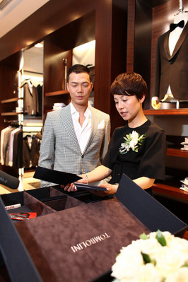 香港知名藝人謝天華先生在報喜鳥集團上海歐爵服飾有限公司總經理姜蓉芬女士的陪同下,來到TOMBOLINI店鋪,和TOMBOLINI服裝進行了零距離的接觸,品牌高層親自為謝天華先生介紹了本季的新款服裝,令他切身感受到TOMBOLINI對于卓越品質和精良工藝的不懈追求。