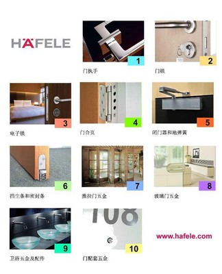 海福樂的主要產(chǎn)品分為家具五金、建筑五金和電子門禁系統(tǒng)三大類,在德國擁有占地近10萬平方米的高架立體倉儲配貨中心,常備10萬多種五金產(chǎn)品。在中國,海福樂常年保持近6000種產(chǎn)品的庫存。海福樂龐大的產(chǎn)品線能夠滿足各種需要,提供一站式購物。
