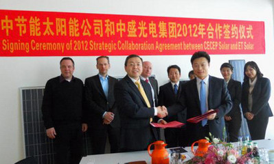 南京2012年6月7日電 /美通社亞洲/ -- 全球領先的一站式太陽能電力解決方案的提供商 -- 中盛光電集團 ET Solar Group (下稱“ET”、“中盛光電”或“中盛”)日前宣布承建的10兆瓦德國地面光伏電站項目即將于今年6月底竣工。