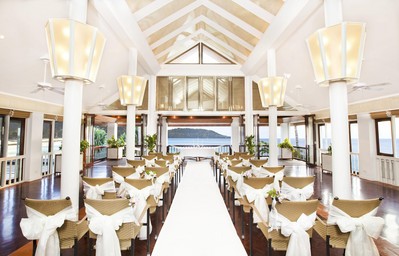 以浪漫之名取名為“戀人婚禮堂”,該禮堂可以眺望關島最美麗的情人崖,這座婚禮堂有環繞180度的通透視野,挑高的白色天花板與大理石地面相襯,行程開闊的空間感。正對情人崖,因而以西班牙“情人”名字命名。