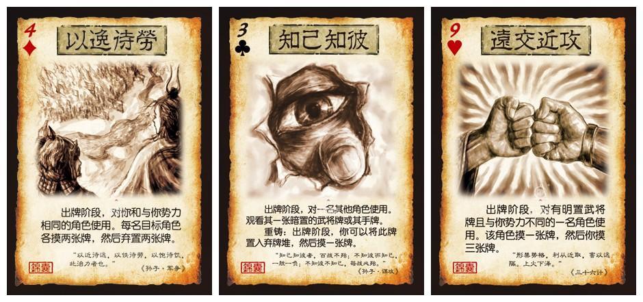 【遠交近攻】是一張能夠讓你爆發到極致的錦囊,摸取3張牌有時真的能達到逆天的效果,需要注意的事情有兩點:1,使用的時機,如果手牌比較充裕,可以考慮適當的保留,畢竟摸多了也要棄……2,指定的目標,因為不能是自己的隊友,所以盡量選擇威脅較小的勢力和武將。