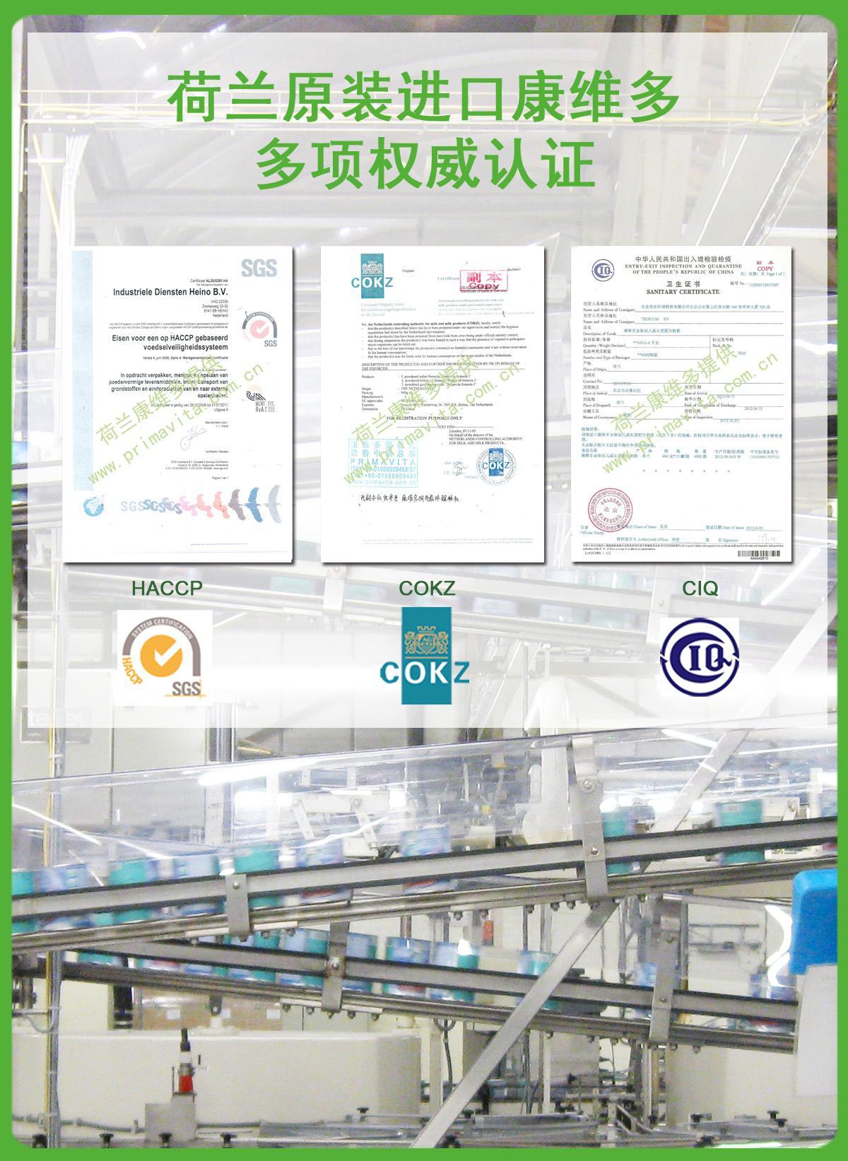北京2012年10月23日電 /美通社/ -- 康維多(Primavita)是荷蘭原裝進口優質奶粉,天然純凈奶源是其品質卓越的保證,更是在歐盟嚴格的質量監控體系下,從奶源到灌裝全程嚴格管控,確保優質營養高效呵護寶貝健康成長。嬰幼兒配方奶粉是在無母乳或母乳不足情況下滿足嬰幼兒健康成長所需足夠營養,其高品質的載體除了滿足國標硬性數值要求之外,還體現在其原料、工藝、生產過程中的管控和產品售后服務等方面。