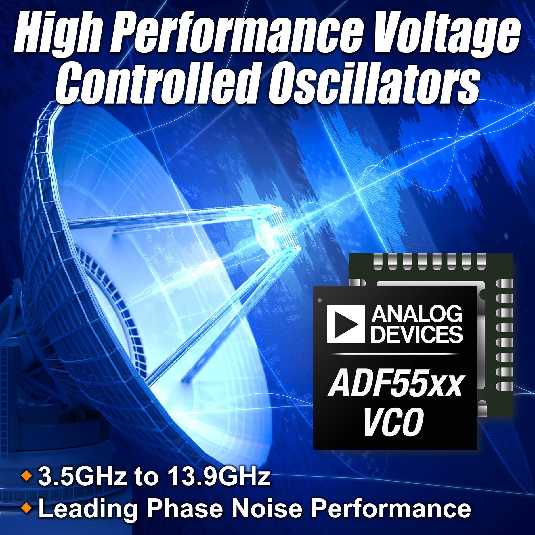 北京2012年10月30日電 /美通社/ -- Analog Devices, Inc. (ADI),全球領先的高性能信號處理解決方案供應商,最近針對點對點(PtP)儀器儀表/測試設備和衛星通信應用,推出全新的微波IC系列產品 -- ADF55xx系列電壓控制振蕩器(VCO)。新型ADF55xx VCO系列具有業界領先的相位噪聲性能,工作頻率范圍涵蓋3.5 GHz至13.9 GHz,提供寬調頻范圍,是ADI先進的PLL頻率合成器產品組合的補充。全新VCO系列首次推出6款器件,將于本周亮相ADI展臺,展位號221。
