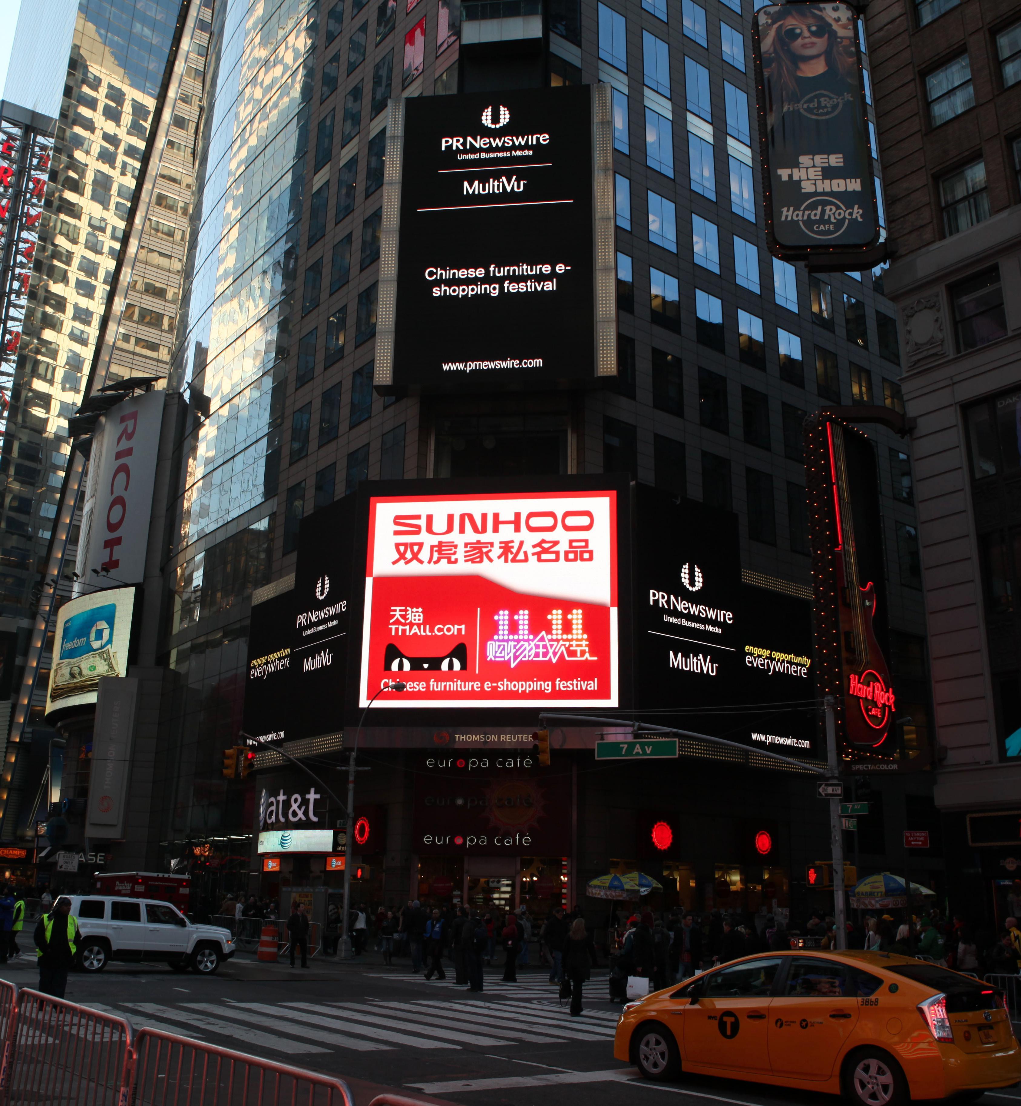 臨近光棍節(jié),各大電商促銷(xiāo)活動(dòng)早已提前狂歡。而為了在眾多電商中脫穎而出,備戰(zhàn)“雙十一”購(gòu)物狂歡節(jié),雙虎家私名品電子商城首度攜手天貓榮登紐約時(shí)代廣場(chǎng)。雙虎家私名品廣告登陸紐約時(shí)代廣場(chǎng)已不屬首次,但這卻是天貓家具電商在世界十字路口的首次亮相,也是中國(guó)家具電商席卷紐約國(guó)際市場(chǎng)的首次創(chuàng)舉。