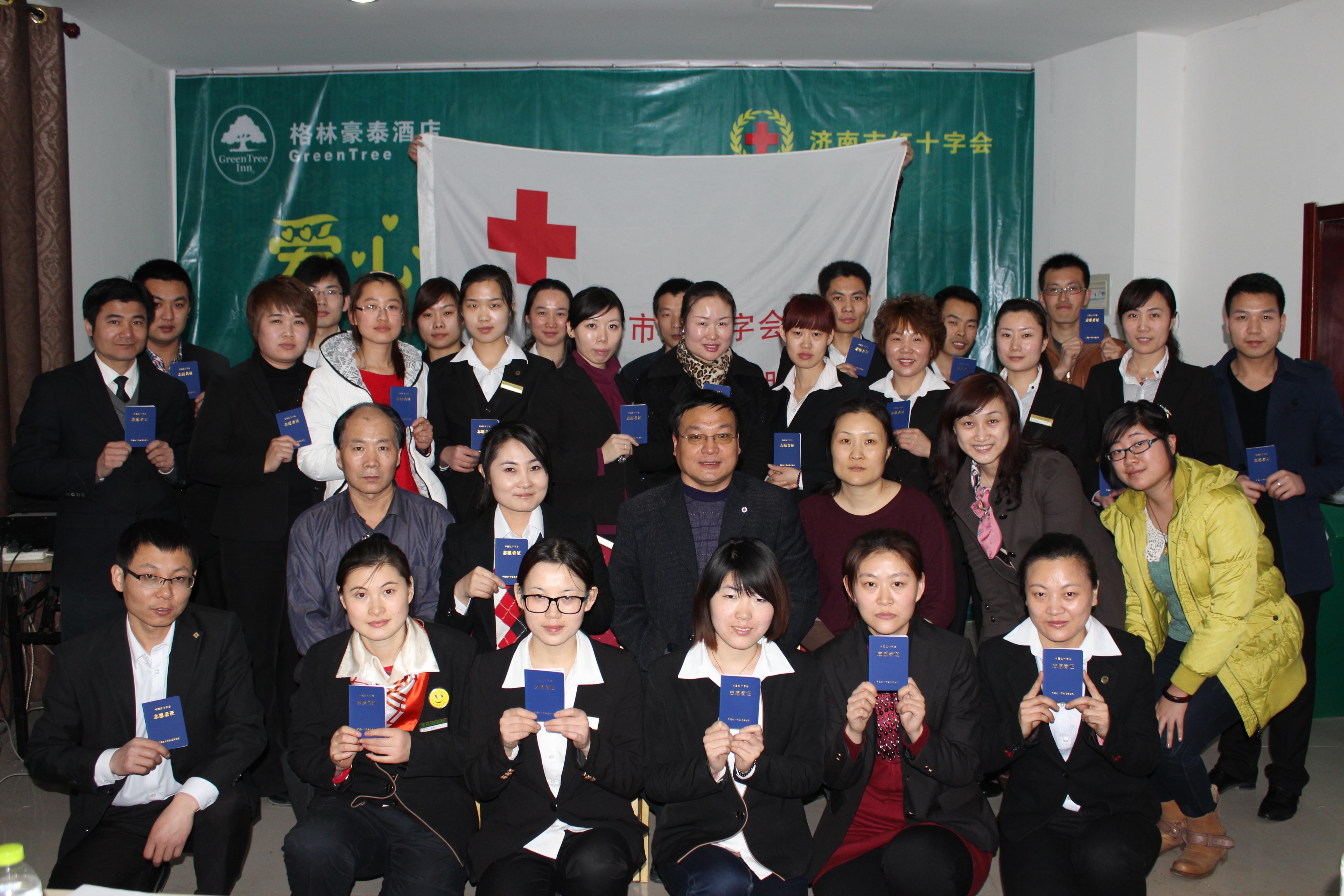 濟南市紅十字會副會長劉成海先生致辭講話:“紅十字事業是造福社會的崇高事業,是充滿愛心的光榮事業,也是需要社會各界大力支持的公益事業。志愿服務是國際紅十字運動的基本原則之一。經濟南市紅十字會研究決定,同意格林豪泰酒店濟南城區成立‘濟南市紅十字會格林豪泰酒店志愿者服務隊’”。
