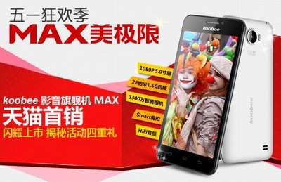 另外,koobee四核旗艦MAX主打“影音”功能,采用wolfson專業音樂解碼芯片,擁有HiFi純音效果。系統搭載Android 4.2系統,內置場景桌面;功能上支持MHL視頻同步,將手機屏幕同步到電視中;制作上后蓋采用IML工藝,做工扎實,手感極佳。