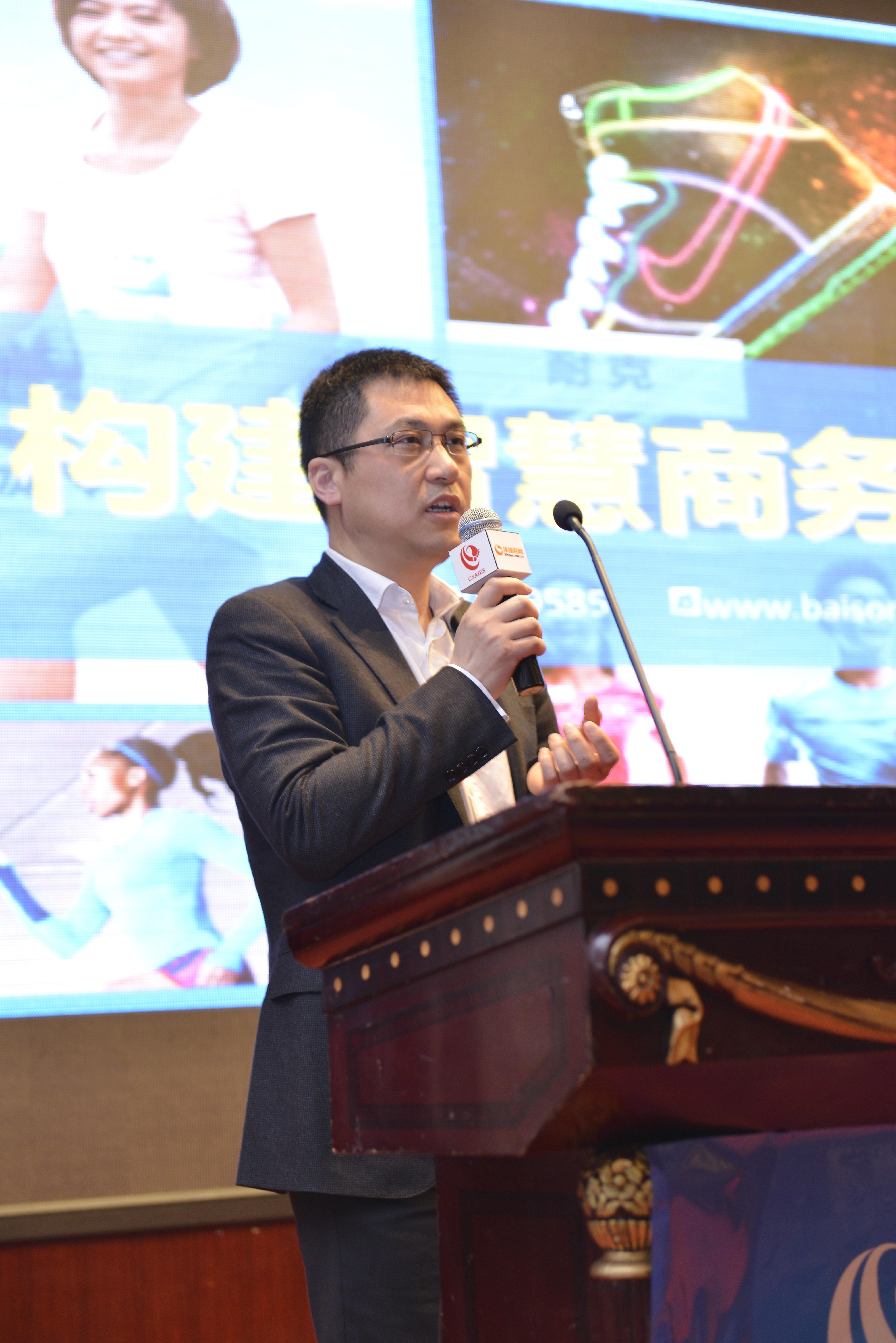 圖為百勝軟件董事長黃飛在2013鞋服電商峰會現場