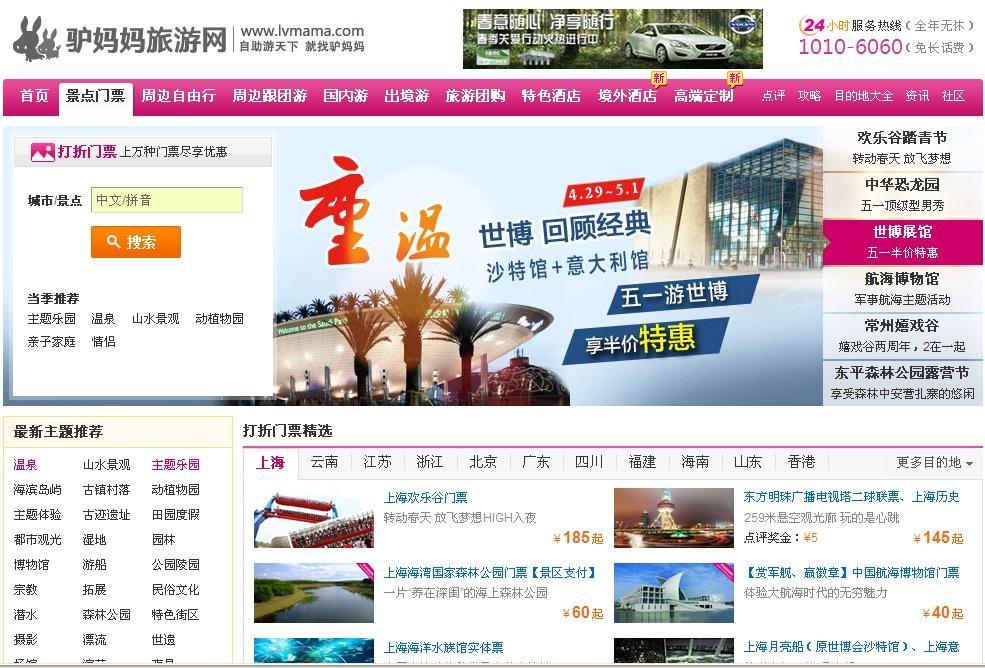 目前,驢媽媽旅游網已經形成了以打折門票、自由行、度假酒店為主體,同時兼顧跟團游、長途游、出境游、旅游團購等業務,為游客出行提供一站式旅游服務,并最終打造成為以“自助游”為核心特色的綜合型旅游網站。
