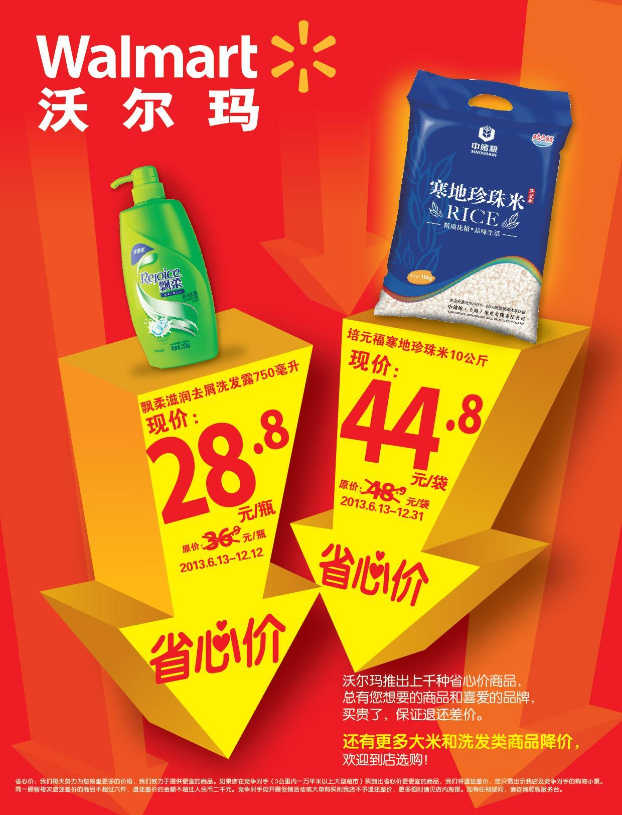 深圳2013年6月13日電 /美通社/ -- 沃爾瑪一直致力于給顧客提供低價商品,并長期推出了上千種省心價商品,滿足顧客每日所需。今天起,全國范圍的沃爾瑪購物廣場將特別推出 “省心價”商品:培元福寒地珍珠米(10公斤裝)和飄柔滋潤去屑洗發(fā)露(750毫升裝),這兩款商品的價格有效期將持續(xù)到今年12月。