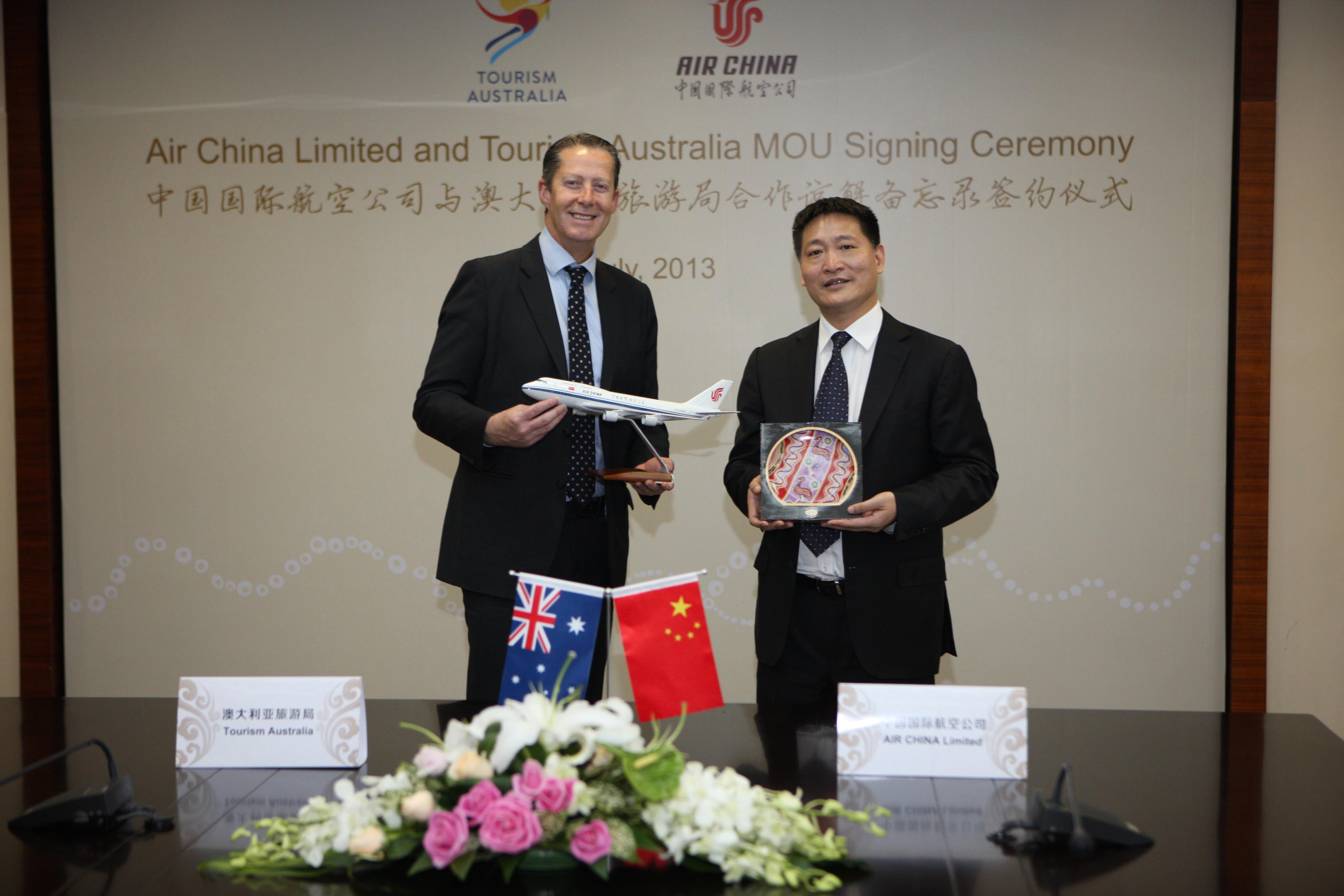 北京2013年7月2日電 /美通社/ -- 2013年7月1日,中國(guó)國(guó)際航空股份有限公司(以下簡(jiǎn)稱“國(guó)航”)與澳大利亞旅游局(以下簡(jiǎn)稱“澳旅局”)舉辦合作諒解備忘錄簽字儀式,雙方高層就赴澳旅游市場(chǎng)推廣及航空運(yùn)力優(yōu)化配置達(dá)成協(xié)議。國(guó)航副總裁王明遠(yuǎn)及澳旅局行政總裁麥勤偉(Andrew McEvoy)代表雙方簽署了備忘錄。