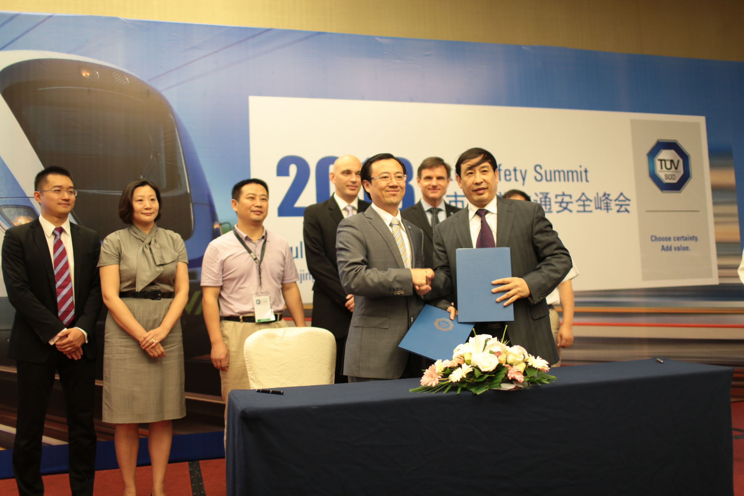 南京2013年7月5日電 /美通社/ -- 全球領先的檢驗、測試和認證服務公司TUV南德意志集團(以下簡稱“TUV SUD”)與南京市經濟與信息化委員會在南京聯合舉辦了城市軌道交通安全峰會,南京市副市長羅群和TUV南德意志大中華集團總裁兼首席執行官范華德(Dirk von Wahl)先生等出席了本次峰會。此次峰會匯集了政府機構、行業協會、運營商、國內軌道交通行業的領軍企業、學術機構以及來自TUV SUD的技術專家等,共同圍繞工程的獨立安全評估、認證以及中國城市軌道交通安全評估體系、車輛防火要求的檢測技術等方面的議題,探索交流了相關最新安全技術和發展,旨在提升中國軌道交通安全防范意識并降低運營風險。峰會期間,TUV SUD與在軌道交通領域實力雄厚的西南交通大學簽署諒解合作備忘錄,通過產學研間的密切合作,共同推動中國城市軌道交通的安全建設與發展。