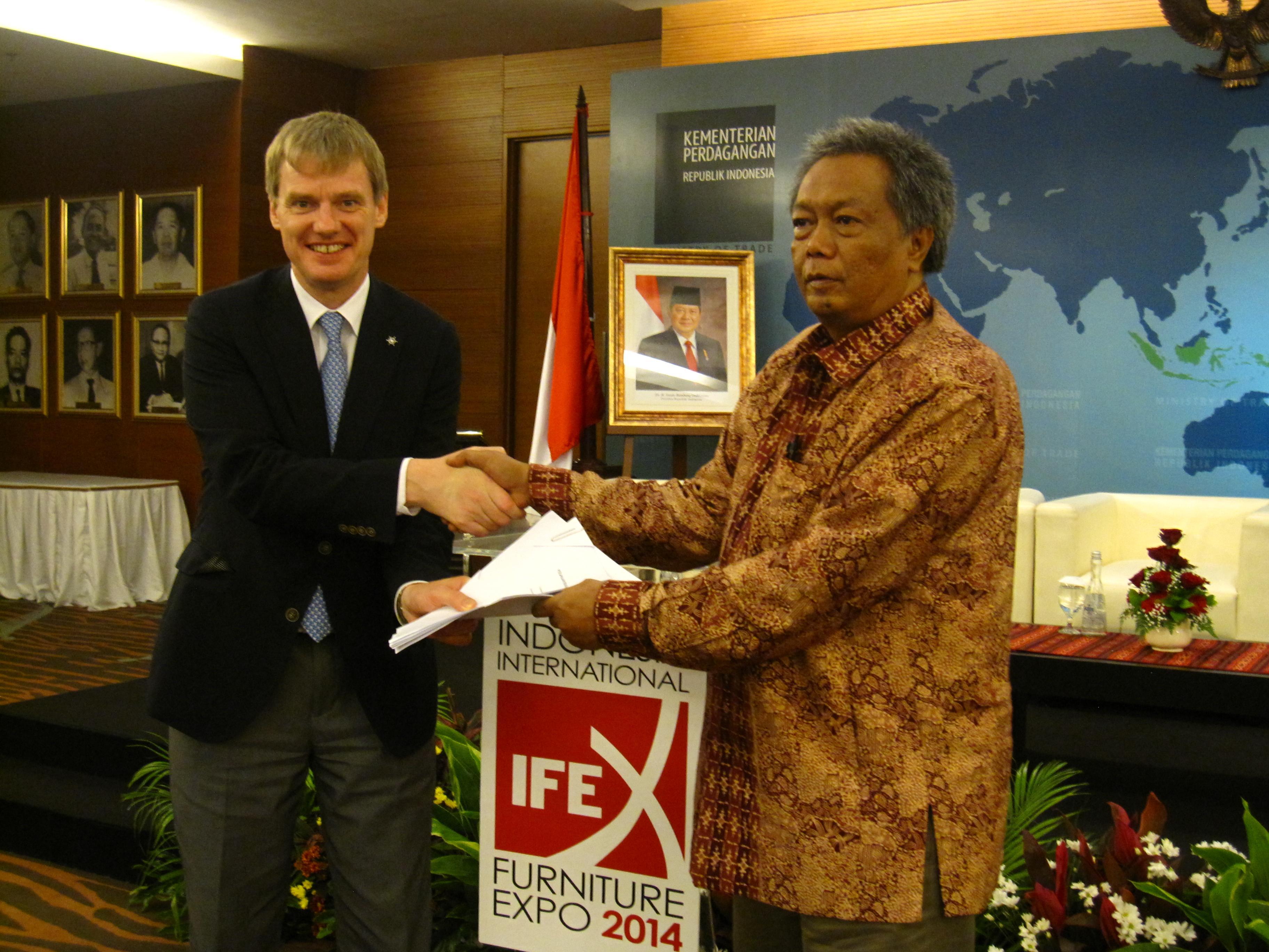 印尼雅加達2013年7月9日電 /美通社/ -- 亞洲博聞聯同印尼家具協會 (AMKRI) 將舉辦印尼國際家具展 (IFEX)。展會將于2014年3月11至14日在雅加達國際展覽中心 (JI Expo) 及2014年3月12至15日在雅加達會議中心 (JCC) 舉行。亞洲博聞高級副總裁栗棲尹武與AMKRI主席Soenoto先生、印尼工業局農業部部長Benny Wahyudi先生及印尼貿易局國家出口貿易發展部部長Gusmardi Bustami先生在7月5日于印尼貿易局舉行的新聞發布會中宣布本次合作。