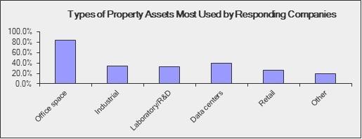 目前,CoreNet Global 的全球企業合作伙伴管理著全球范圍內不動產版塊介于兩百萬平方英尺至11億平方英尺的不動產,包括寫字樓(占總版塊的84.8%)、工業地產(34.8%)、實驗室(32.6%)、研發中心(32.6%)、數據中心(39.1 percent)、零售業(26.1%)和其他混合業態的商業地產(19.6%)。