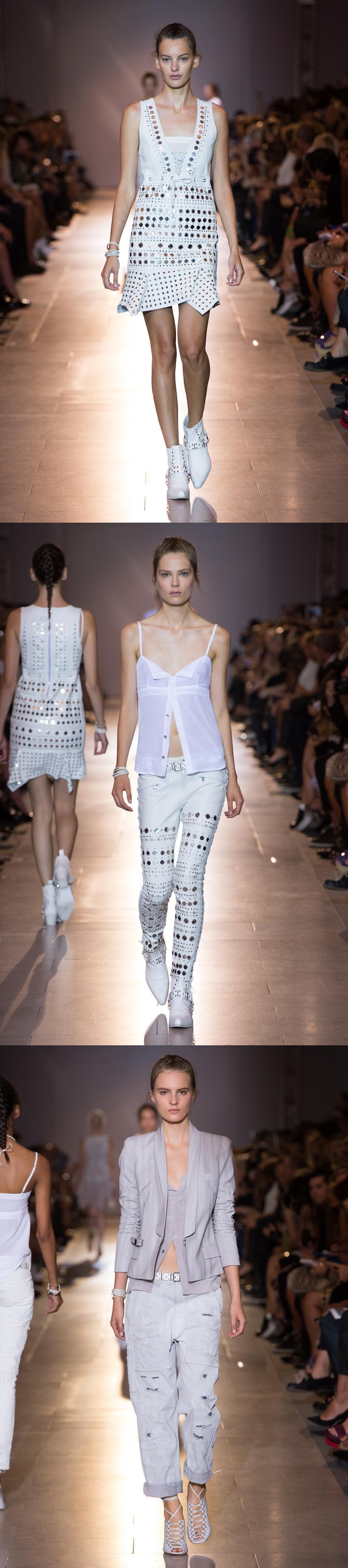 作為DIESEL BLACK GOLD創(chuàng)意總監(jiān)Andreas Melbostad為品牌推出的第二季作品,2014春夏女裝系列對(duì)品牌現(xiàn)有的主打元素進(jìn)行了延伸,并大膽引入了一種全新的柔性質(zhì)感,包括金屬扣眼、亮片、拉鏈、扣子。同時(shí),從皮革到喬其紗等一系列的單品中,其包含的硬性基調(diào)無不透露出奢華的工業(yè)元素。在本季的用料方面,設(shè)計(jì)師選用了雙縐真絲、真絲喬其紗、全棉府綢、全棉薄紗等更輕、更軟的原料,與本季春夏系列的實(shí)利主義核心 -- 皮革和牛仔形成了鮮明的對(duì)比。