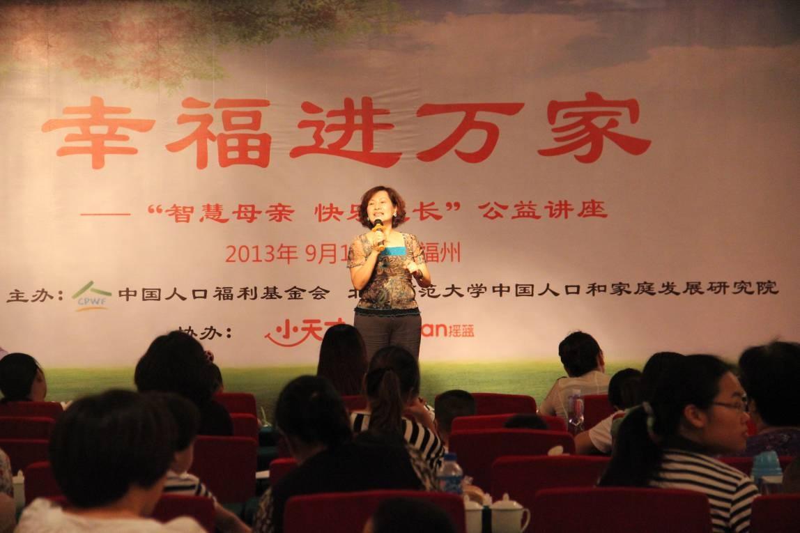 2013年9月14日,福州市外貿中心酒店碧麗殿里座無虛席,來自于各行各業的父母們聚集在到這里,共同參加“幸福進萬家 -- 智慧母親 快樂成長公益講座”。