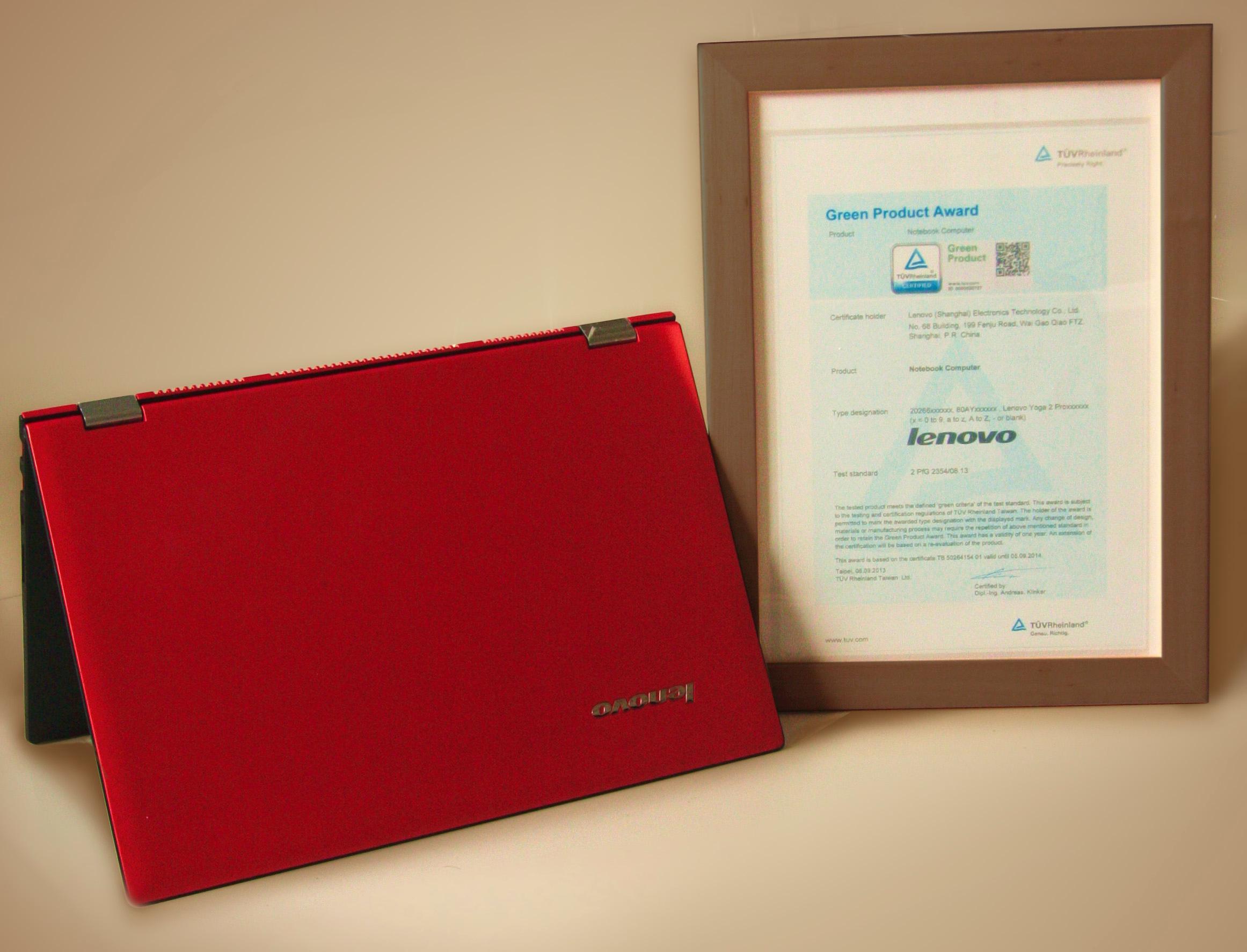 聯想Yoga 2 Pro筆記本獲德國萊茵TUV綠色產品認證證書