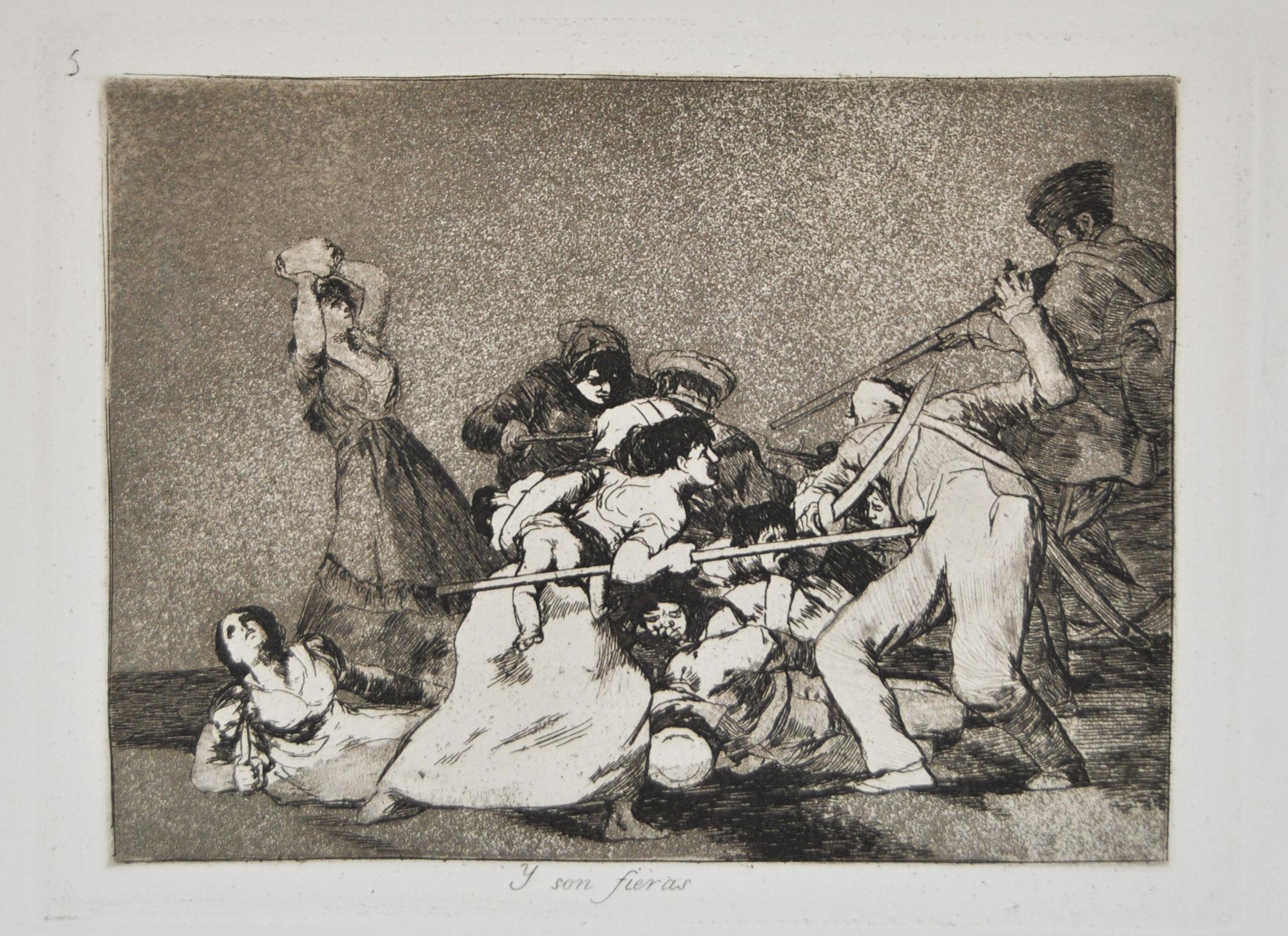《戰爭的災難》系列是戈雅目睹了1807至1808年間戰爭的暴力和悲劇之后創作的另一部共有80幅作品的版畫集。這一系列不僅是愛國情緒的體現,更是對世界真理的追求與探索。通過這一組作品戈雅想傳達給大家的是:在社會力量與歷史面前,人隨時會淪為受害者或施害者。戈雅通過版畫的表現對此進行見證,就如其著名的代表作《5月2號的起義》和《5月3日的剪影》。