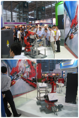 在新產(chǎn)品發(fā)布會(huì)后,客戶及媒體參觀了新建成的昆山機(jī)器人展示測(cè)試中心,該中心展示了新產(chǎn)品以及幾款新機(jī)器人,所有這些均顯示出改善后的性能與設(shè)計(jì)以及新的應(yīng)用程序包。例如,用于物料搬運(yùn)的 NJ4-90 black wrist 機(jī)器人以及用于拋光的偏心腕機(jī)器人。